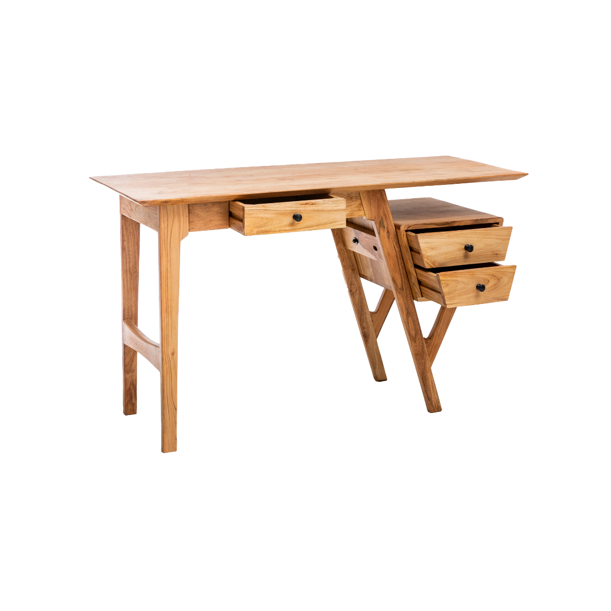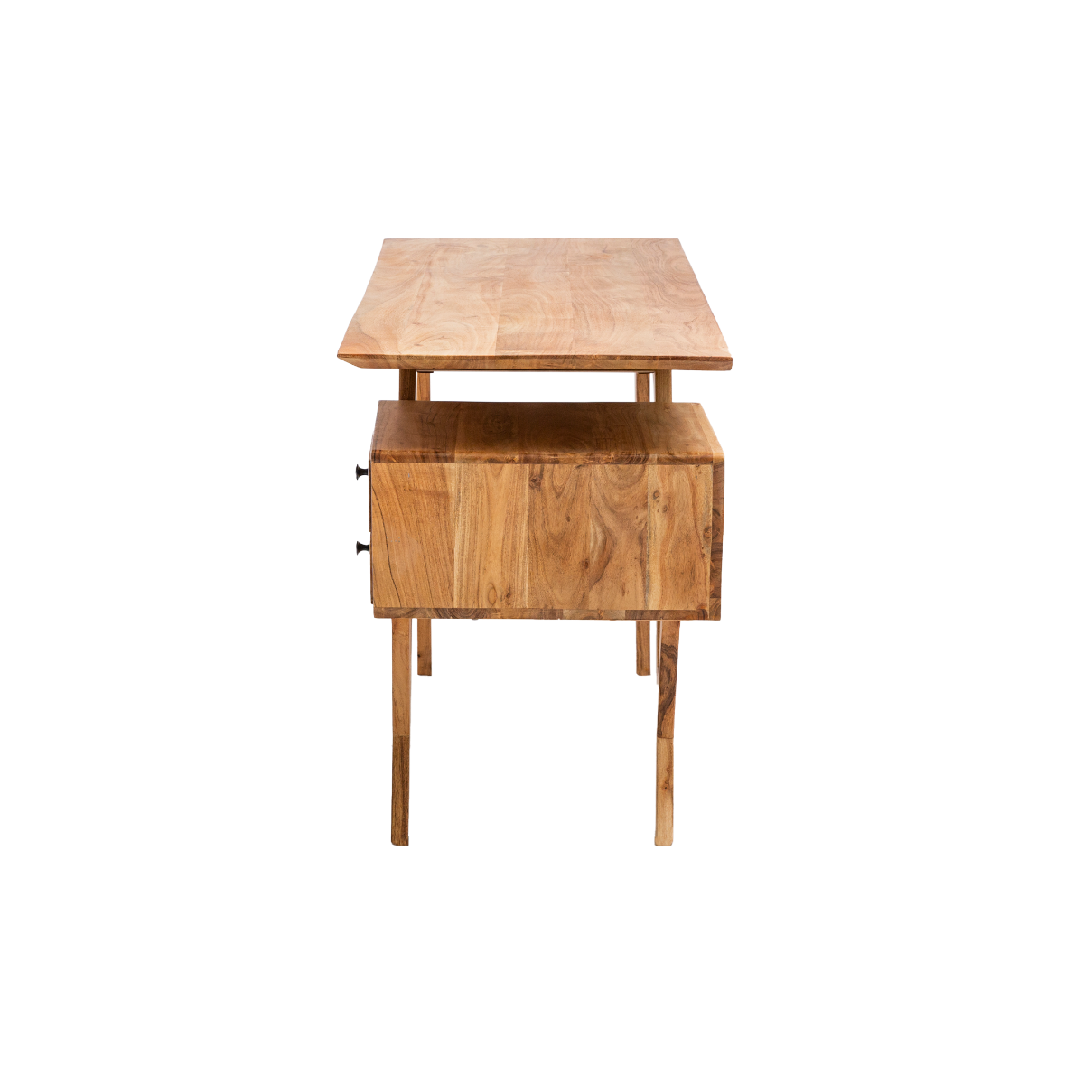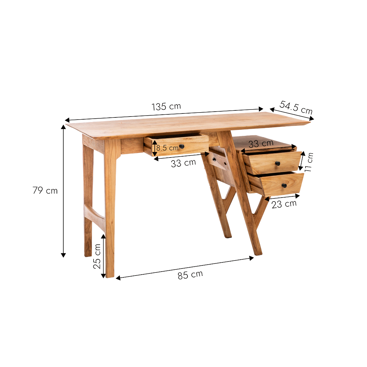 Crafted from durable acacia wood, this desk is ideal for any space. With a height of 79 cm, a width of 135 cm, and a depth of 54.5 cm, the Eliott desk offers ample workspace without taking up much space. Plus, with its three drawers, the Eliott desk is perfect for storage—just what you need to bring order to your home office!