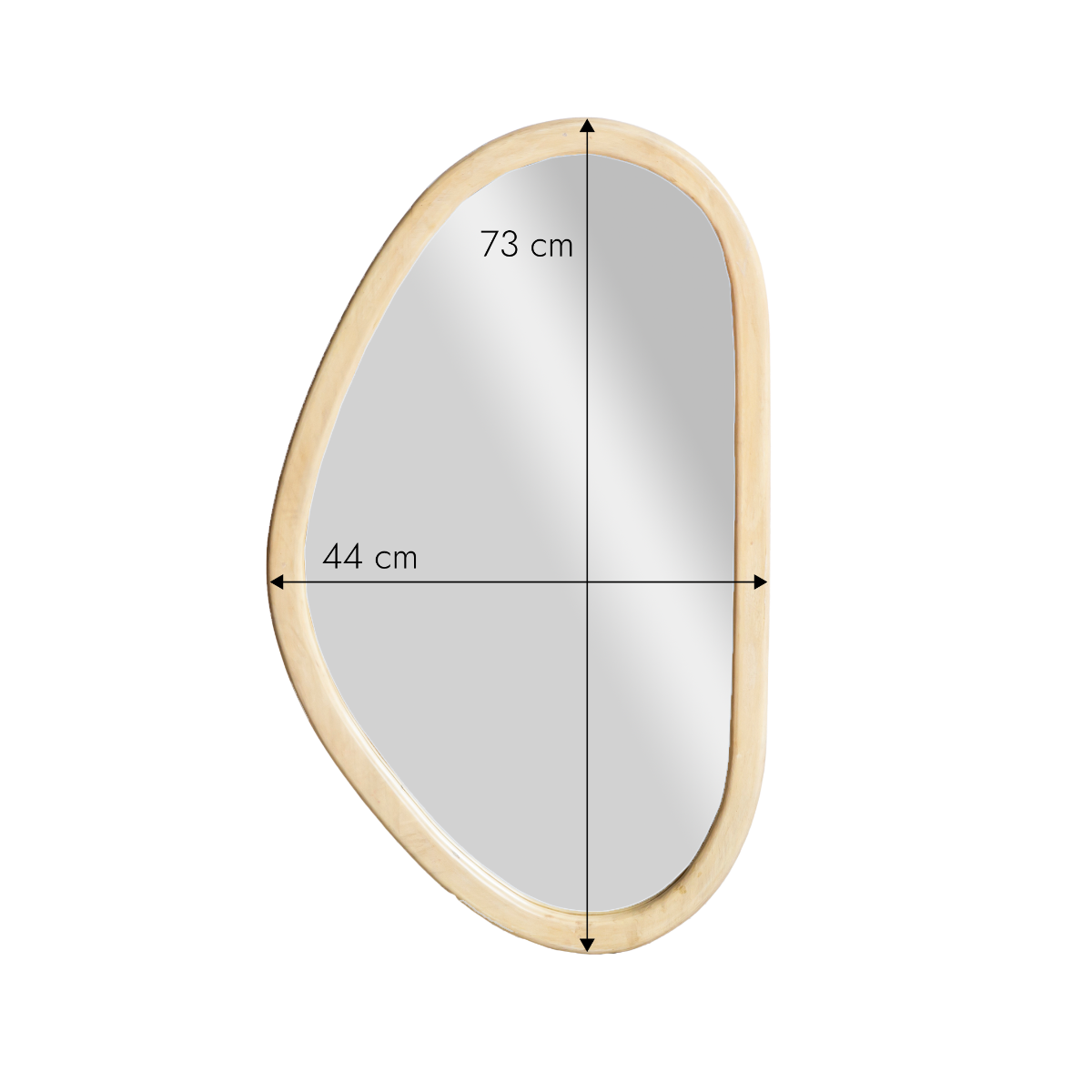 The Marley mirror is an abstract piece crafted from mango wood, ensuring impeccable quality. Whether you're looking to add a contemporary or bohemian style to your home, this unique oval-shaped mirror can do the trick. Measuring 44 cm wide and 73 cm high, it makes a beautiful addition to any wall.